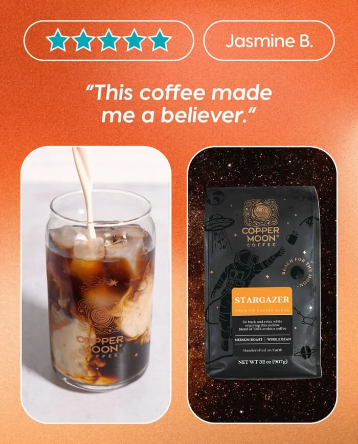 After driving awareness with catchy top of funnel content, this animated middle funnel ad featuring bold colors, customer testimonials and coffee pouring shots produced a substantial amount of conversions. We tested multiple variations of this ad using different colors and imagery, and found this combination to be the clear winner.